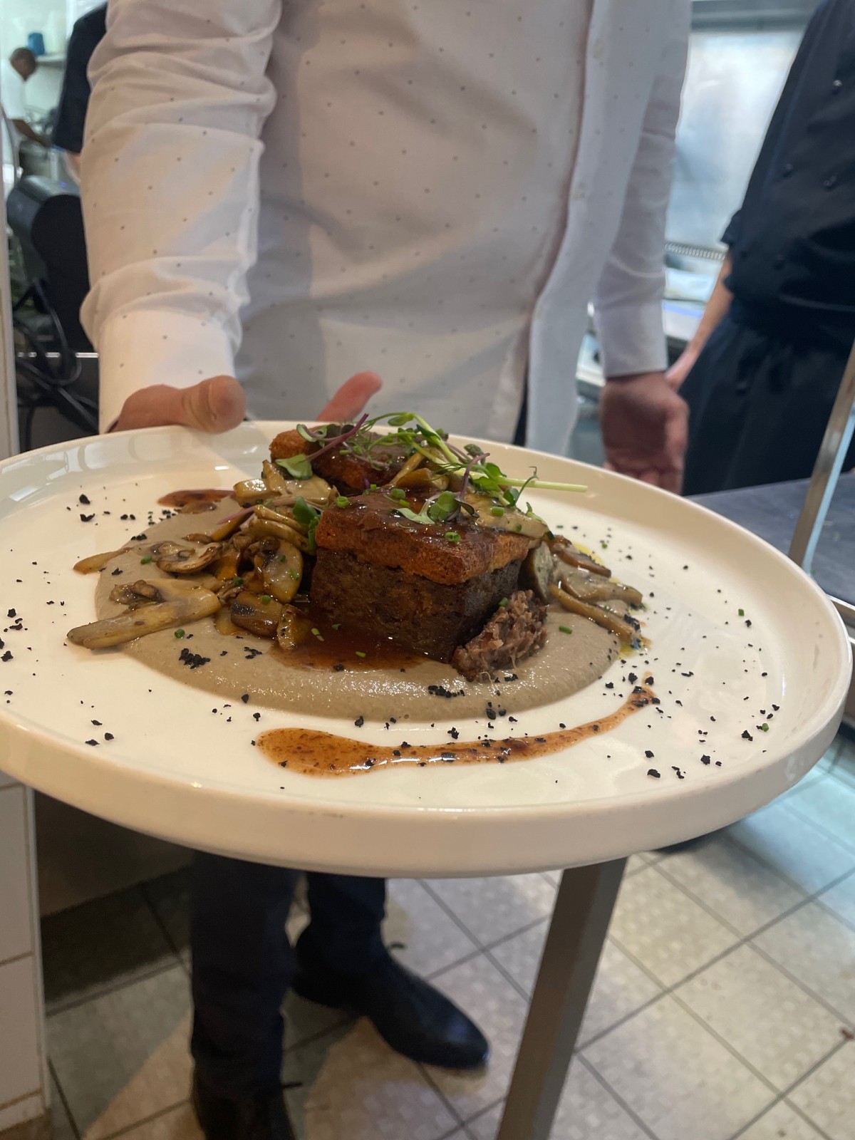 ô bonne mère ça fond dans la bouche! Paleron de bœuf confit en croute de parmesan et thym, champignons en deux façon, jus truffé